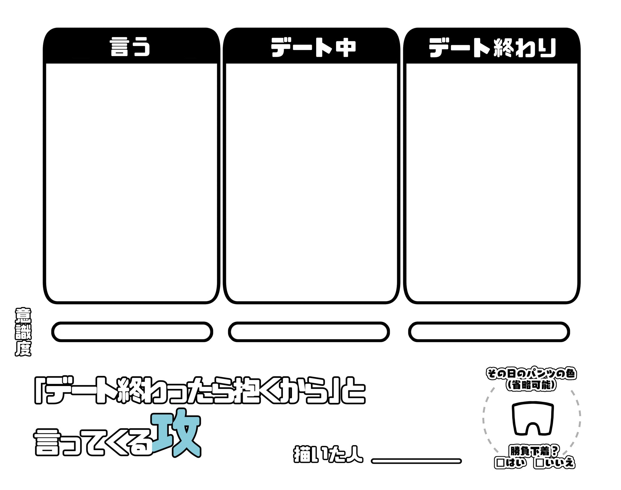 お遊びというか、これって受けや攻めの表情を見て楽しむテンプレでしょうし、ごたごた文字で書くのもどうかと思うんですけどね。なので、もしも出来たらここにササッと流すかしれっとtwitterに流すか……タグは使わないと思います。