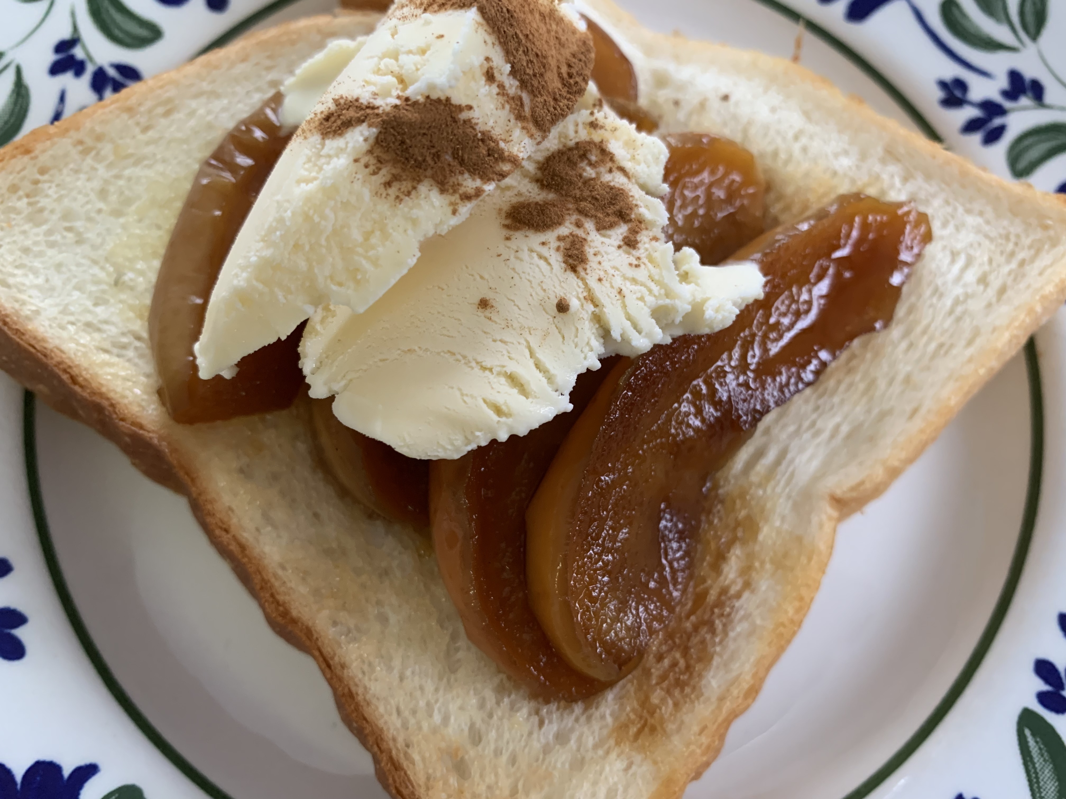 りんごのキャラメル煮 つれづれ 2021年12月31日 なに食べレシピ作りました。おいしい♡写真はできたてほやほや30分後昨夜作ったキャラメル煮をトーストの上にドーンてんさい糖を使ったので色黒さん。りんごは近くのスーパーにふじしかありませんでした。 [2回]
