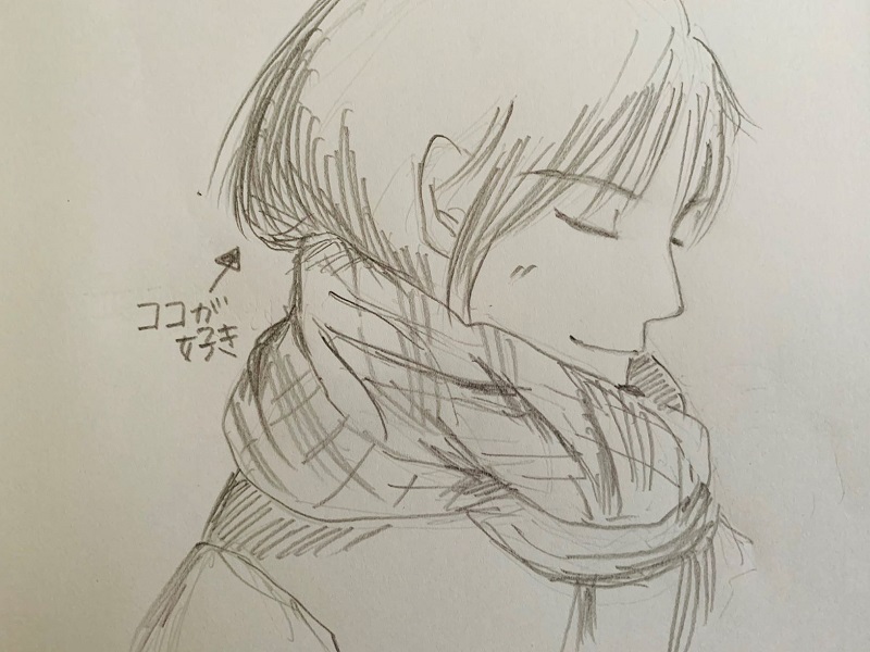 だいぶ無造作に巻いたのだろう。後ろ髪はマフラーの中に残っていた。